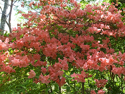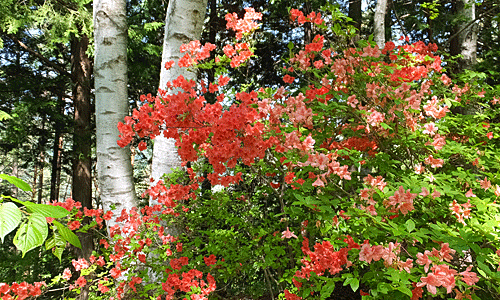 | ヤマツツジ:ツツジ科-3 シラカバと2色のヤマツツジ |