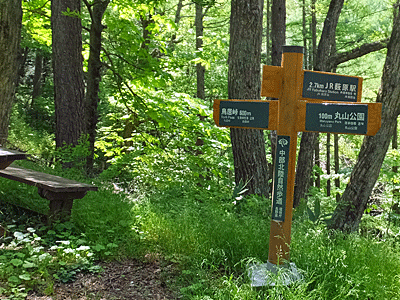 | あずまやがある展望台への分岐にある指道標 ここまでくれば、あと少し |