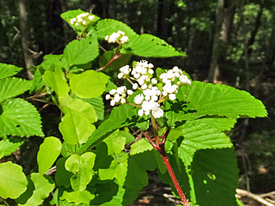 | ミヤマガマズミ:レンプクソウ科 葉柄が赤くて長いから、コバではないと思った |