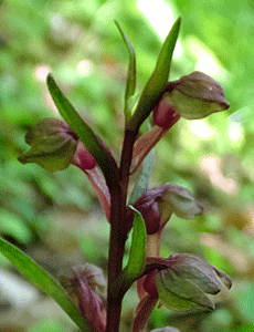 | アオチドリ:ラン科 初めて見る花だった! 「アオ」とはいうものの、紫褐色 「ラン」・・・だとは分かる よく似たランと言えば、トンボソウのようなラン 図鑑で、「ラン」のページを1枚ずつじっくり見た ネットで「紫褐色のラン」と入力しても ヒットしない・・・ 花に詳しい友達に、画像を送って 「心当たりはない?」と尋ねると 「アオチドリラン」と返信があった もう一度図鑑とネットを調べてみた そうねえ、似てはいるけれど、なんとなく感じが違うように思える 他に似ているものが無いので、そうかもね…が本音 |