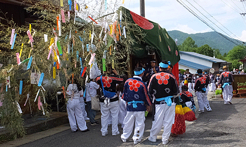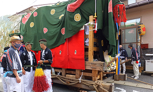| 山車の後ろの白い服の子どもたちは、 来年の横笛係かも |