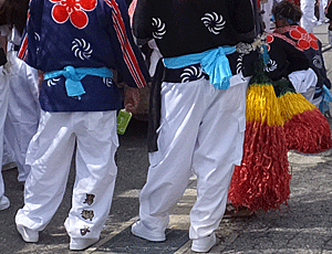 | ↑ 中学生か高校生くらいの女の子は 横笛担当 「上村」と書かれている白いシャツを着ている子たちは 見習だろうか? |