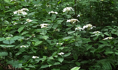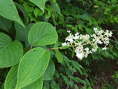 | ヤマアジサイ:アジサイ科 緑の葉っぱに真っ白な花! 以後、あちこちに咲いていた |