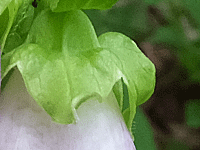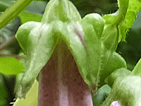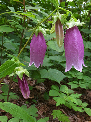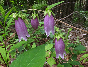 | ホタルブクロ:キキョウ科 みな、この紫系の色だった ヤマホタルブクロと、ホタルブクロの違いを調べてみた 山に咲くからヤマホタルブクロという分けではなく、 『萼片の間が盛り上がっている ⇒ヤマホタルブクロ 萼片の間に反り返る付属片がある ⇒ホタルブクロ』だって ↓ ↓ 萼を拡大してみた |