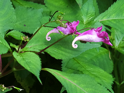 | ツリフネソウ:ツリフネソウ科 この湿り気のある箇所だけに咲いていた キツリフネソウは1株・1花だけ 萎びていて撮影の対象ではなかった |