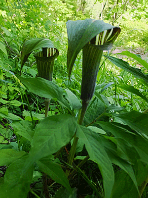 | マムシグサの仲間:サトイモ科 この辺りで、花時に見たのは2種類 ↓ |