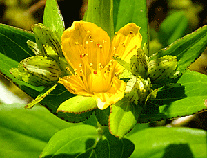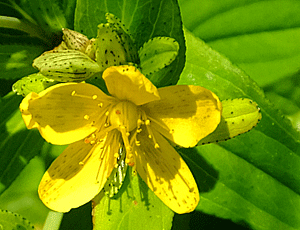 | オトギリソウ:オトギリソウ科 花びらや萼に、黒点と黒線がいっぱい |
