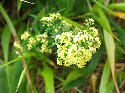 | キバナカワラマツバ:アカネ科 3〜5合目辺りには、たくさん見かけるが、 山頂近くには少ない これ1株だけだった |