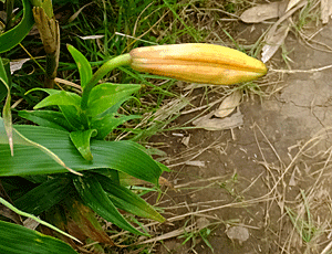 | コオニユリ:ユリ科 左 山頂近くではつぼみ 右 山頂駐車場で スカイライン脇にもたくさん咲いていた |