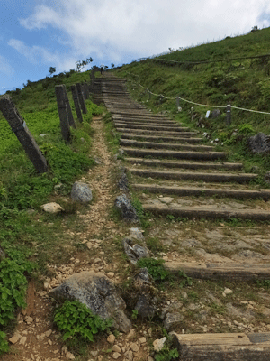 | こんな階段が続く 2度目の山頂に着いたら、 今度は西登山道を下った |