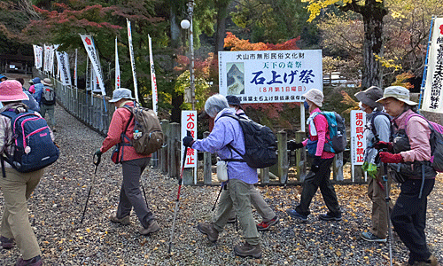 | ここが大鳥居 15:08着 (全員集合場所のI) 他の参加者たちを待たせているのではないかと 気が気でなかったそうだが、まずは一安心 全員集まるのを待って、車組は駐車場へ 電車組は車道をまっすぐ歩いて「楽田駅」へ 「楽田駅」でホームを間違えたグループもあったが、 無事「犬山方面」のホームについて乗車 15:55発 犬山方面は「こちら」・・・と、 はっきり分かるように書いてほしいという声が強かった 犬山駅では、3番ホームに着 新可児行きは、6番ホームなので長い階段を登って降りた 新可児駅で1本前の電車に乗ったグループと合流でき、 全員が揃った ・・・・・・・・・・・・・・・ 行動時間 約5時間40分 歩いた距離 約12km 歩数 約2万500歩 ・・・・・・・・・・・・・・・・ |