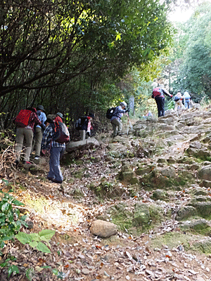 | 今日は、石段の道を下りる 歩きやすいかと思ったのだが・・・ |