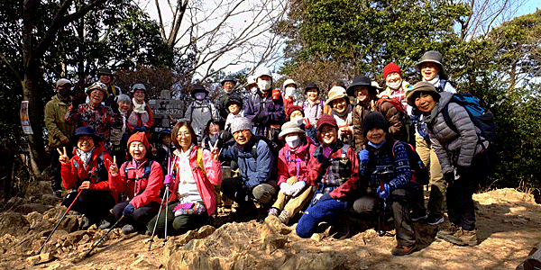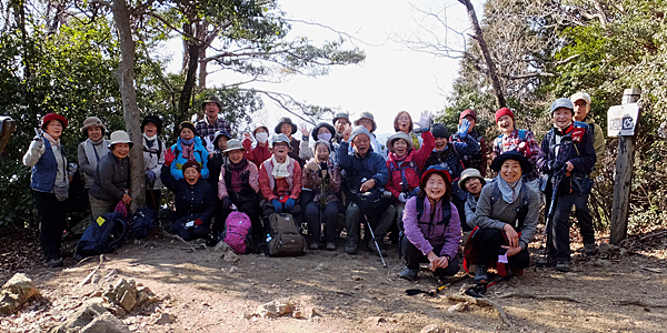 | どんどん登って、弥勒山山頂に着いた 11時頃 今日の参加者、今までの最多の30名 |