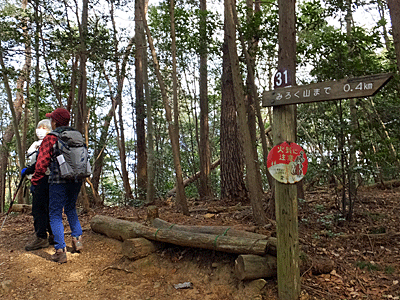 | 弥勒山山頂から右へ東海自然歩道を進む 道標No.31も全員集合場所 |