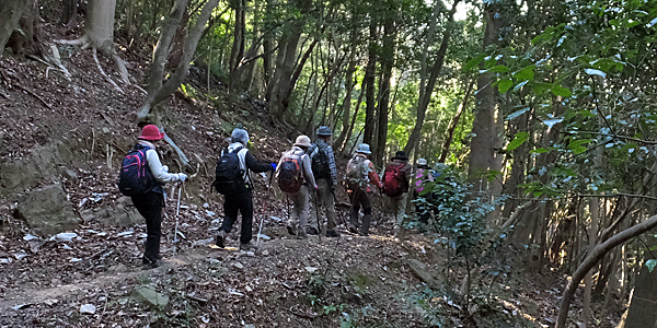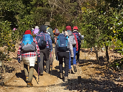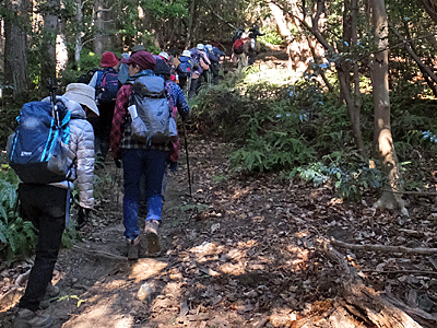 | 1人は、弥勒山山頂から引き返し 1人は、バスで高蔵寺駅へと別行動になったので 28名で大谷山を目指した 14:00頃発 |