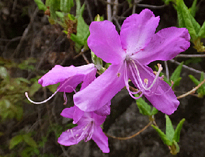 | トウゴクミツバツツジ:ツツジ科 これらも、雌しべの根元にブツブツがあるので トウゴクミツバツツジ |