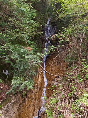 | 今度は水量が多くなった小滝が、右側の斜面から |