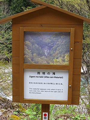 | 「阿寺渓谷協力金のお願い」の看板 あんなに整備されている道を歩いたのに、 1人100円では少なくない?? |