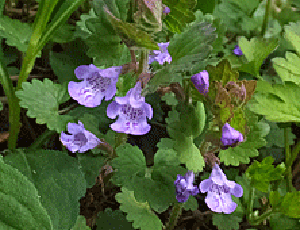 | カキドオシ:シソ科 これも、つる状になった茎を 横へどんどん伸ばして 垣根を通り抜けるという意味で どんどん増えていく |