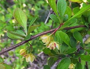| アメリカロウバイかな?:ロウバイ科 お庭に植えてあった 鳥居峠へ行く時、 薮原の町外れで出会ったことがある やはり、植栽だった |