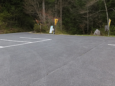 | ↑ 駐車場は平日とあってがら空き その隅から下へ下りる道があったので見に行くと… |