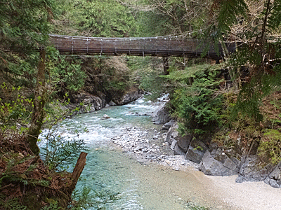 | ↑ こちらは右側の下流方面 ついさっき、吊り橋を見ていた |