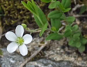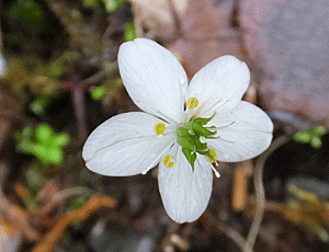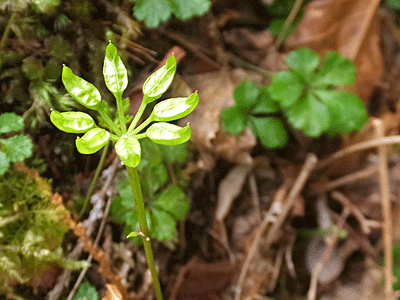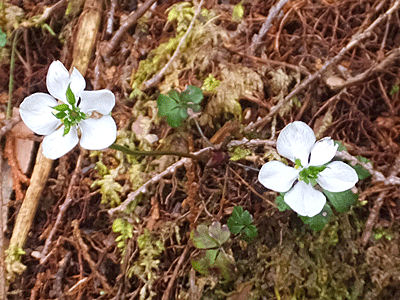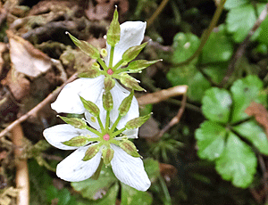 | ゴヨウオウレン(バイカオウレン):キンポウゲ科 5枚の葉=ゴヨウ=ゴヨウオウレン 梅の花(バイカ)に似ている=バイカオウレンともいう |