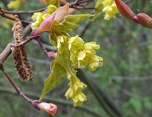 | シロモジ:クスノキ科 シロモジの花がまだ咲いていた! 葉っぱもまだ開ききっていない! 寒いんだねえ・・・ |