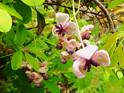 | アケビ:アケビ科 大きな花が雌花 小さな花が雄花 |