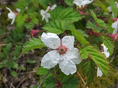 | ナガバノモミジイチゴ:バラ科 下向きに咲くのが特徴 棘は痛〜い |
