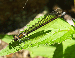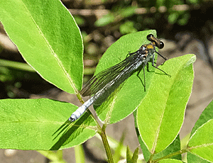 | 細いトンボが寄ってきて、 ストックにとまったり、服にとまりそうになったり 人見知りしないんだねえ・・・ この↑2匹 似ているようで似てない |