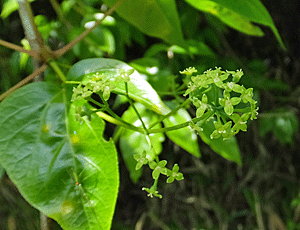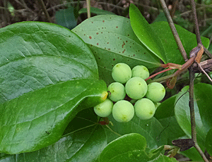 | サルトリイバラ:サルトリイバラ科 若いまん丸い実ができていた |