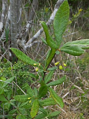 | ヘビノボラズ:メギ科 実 これから赤くなっていく |