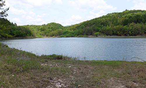 | 竜吟湖に着いた 11:14 竜吟湖は人造湖 こんな大きな人造湖を作るのは、大変だっただろう… 今日は平日だが、左上にある「フェスティカサーキット」では、 レーシングカーの轟音がずっと鳴り響いていた |