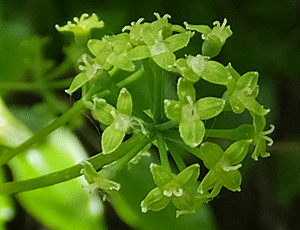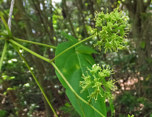 | タカノツメ:ウコギ科 雌雄異株 ↑ これは雄株・雄花 『雄しべ4本と小さな花柱が1個ある』 |