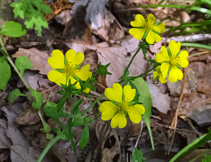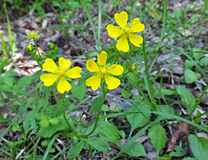 | オヘビイチゴ:バラ科 そんな水に浸かる所でも、林道でも咲いていた |