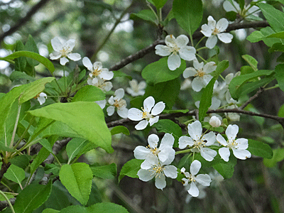 | ズミ?:バラ科 花の盛りが過ぎ、これらは残り花 つぼみが赤ければズミだが、もうつぼみは無し… |
