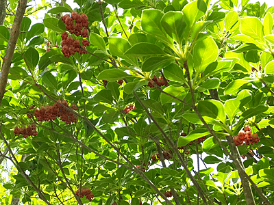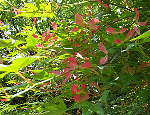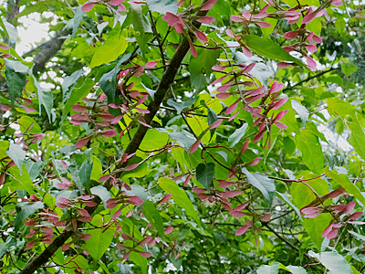 | ウリカエデ:ムクロジ科 赤い実が連なってぶら下がり、可愛い〜 |
