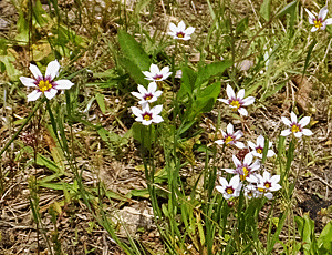 | ニワゼキショウ:アヤメ科 これは白花 右の花はやはり背が高く、15cm以上あった |