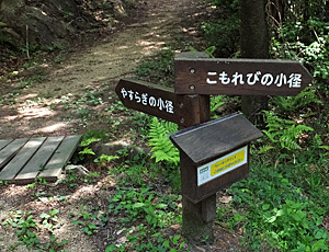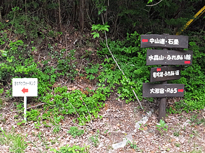 | 分岐を左へ行くと、 中山道「琵琶峠」方面へ行ける 12:32 右折でも直進でも、水晶山方面へ行ける |
