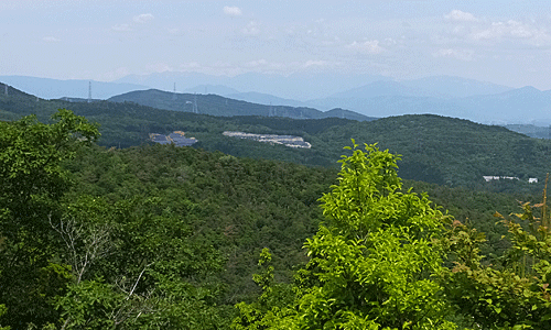 | 恵那山のずっと左手に 中央アルプスがあるのだが、ぼんやりして見えず・・・ |