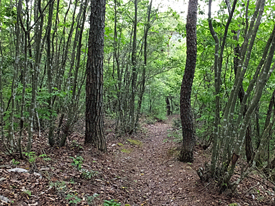 | 休憩後、出発 13:08 ここまで1人に出会っただけ 階段下り(アルプスの小径)より、 山道(鳥屋尾根の小径)の方が楽しそうと思い 階段道を敬遠 |