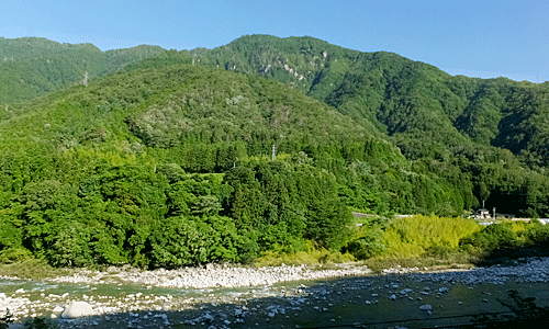 | 多治見駅6:00発に乗車 瑞浪駅で1名・恵那駅で1名乗車 中津川駅で乗り換え、野尻駅に7:12着 今日は良〜い天気! |