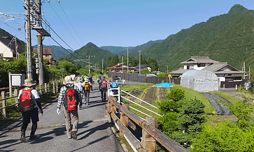 | 車組が待っている阿寺橋を目指す |