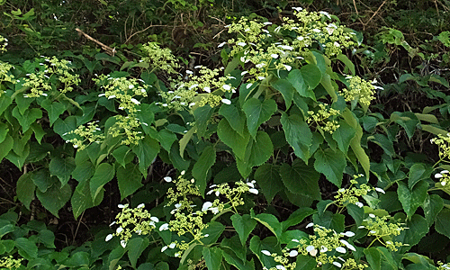 | ヤマアジサイ:アジサイ科 今日1番多かった花 緑の葉と、白い装飾花が爽やか〜 |
