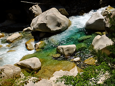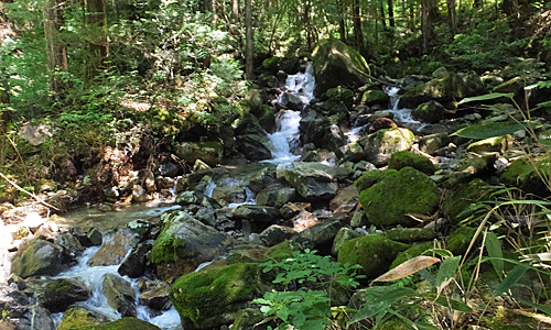 | 「阿寺渓谷の清流」についての説明 ↓要旨です 『“阿寺川はどんなに雨が降っても濁らない”と言われている。 森林を支える山全体が、非常に硬く風化しにくい 濃飛流紋岩(のうひりゅうもんがん)でできているため 安定しているとともに、こすれ合っても 簡単には微粒子になりにくいので、 透明度を維持していると考えられる。』と ふ〜ん、なるほどね! |