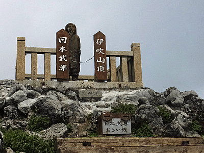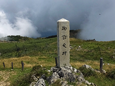 | 「殉難之碑」 12:20 ずっと以前は無かった 最近建てられた碑 『1931年12月15日、測候所の勤務交代のために登山中、 3合目で猛吹雪に遭って遭難 1934年1月15日、山頂付近で雪庇(せっぴ)が崩落して 引き起こした雪崩に巻き込まれて遭難 この2人の殉難之碑が測候所跡に建てられた』・・・と |