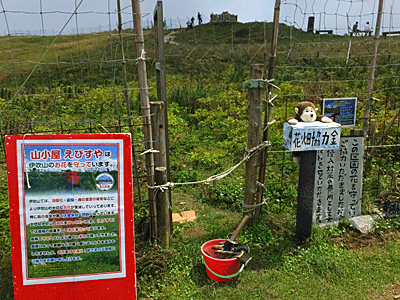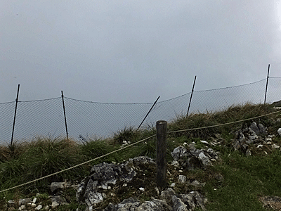 | 「鹿柵」 今日は、鹿の姿は見なかったが、 東登山道の鹿ネットの中で、 まだ新しい鹿の糞を数ヶ所で見かけた |
