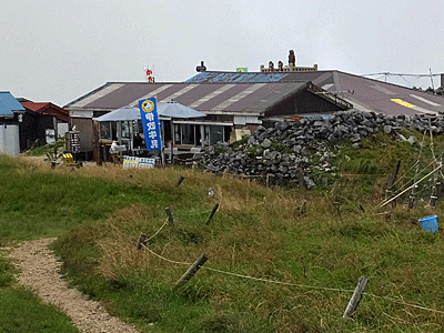 | 山頂に着いた 12:13 (約35分かかった) ↑ 「伊吹山寺覚心堂」は、避難小屋にもなるとか |