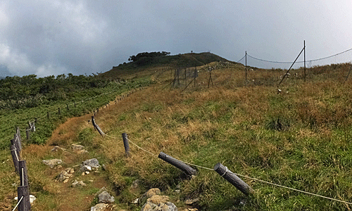 | すぐ、中央登山道へ 13:04 中央登山道も、鹿避け用の扉が作られていた |